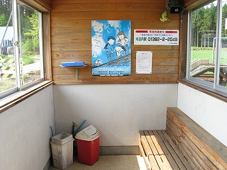 あたりにこの辺じゃ大きな小学校があるが、ほとんど気配を感じず。しかし離れのミニハウスようの待合室の日誌に、「小学生が清掃しています」とあったし、どうなのだろうかと判断付きかねたが、どうも、人数が少なすぎてひと気を感じなかったようだ。翌年閉校している。