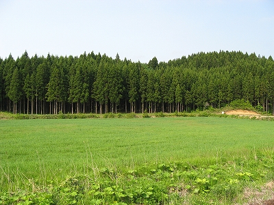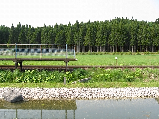 ホーム向かい側の風景。きれいな植林だ。放置された里山と違い現役なのだろう。
