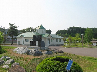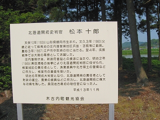 右:鶴岡市との縁についての解説版。庄内藩の105戸が明治18年にここに入植したという。