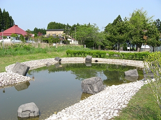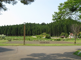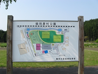 左:鶴岡農村公園の地図。ゲートボールなどもでき、結構広い。農水省の事業。