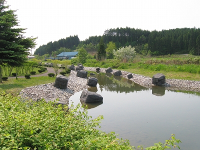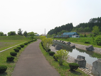 池と渡島鶴岡駅。