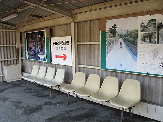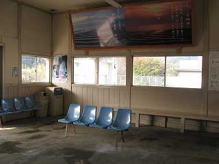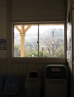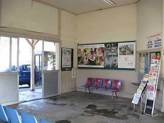 町の人が駅務をやっている。駅務室を覗くと豪勢な応接セットが置かれ、談笑がなされていた。湯沸もできるらしくて何か飲んでいる。無人だったら、あのソファーも埃をかぶったままガラスの向こうになっていたのだろうか。しかし待合部からはたいして凝って駅を活用しようとしている気配はなさそうで、駅務室だけをやりたい範囲で細々と活用していて、待合客の気負わなくてよい雰囲気や、駅の者の自由さが寄せてきていた。
