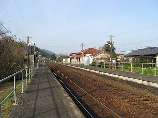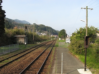上りホームにて三角方を望む。この先だんだん山が迫ってくる。