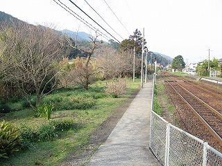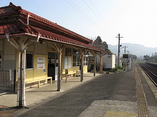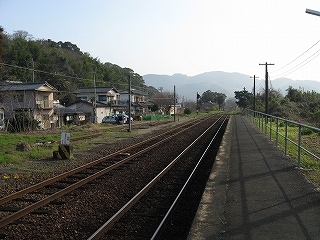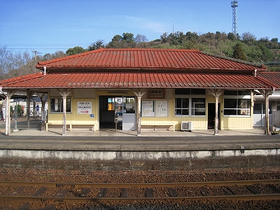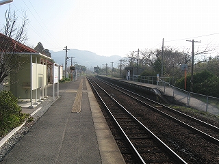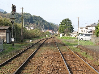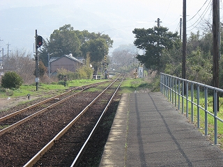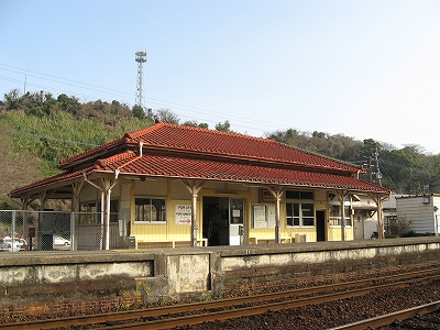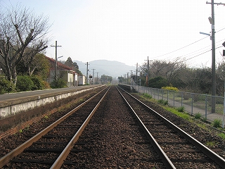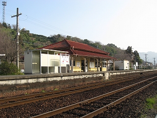 海のだいたい近いところなのはわかっているが、あたりはしんと冷たい空気の中、鳥がこまかく囀るのがやけに反響していて、そのほかはしいん静まっている。気付くと駅舎の赤の重い屋根瓦がぴんと張っていた。もともと三角線の中でも重要な駅らしかった。交換ができ、側線もあった。しかしそういうきびきびしていた時代はとうに葬られたまま、駅だけが美しく残っていた。山側は、半島らしく急に山が深い。地面に優しげに緑が茂り、わずかに花をつける一方、まだ枯れ木も多く、それゆえに鳥の声が響いてくるかのようだった。
