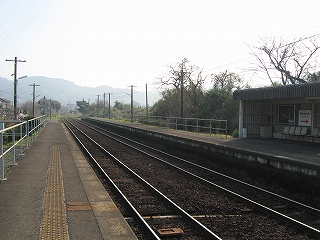 駅舎の中に入って、座る。冷たい空気が支配していて、しだいに自分の体もそれに染まっていった。襟巻きとうなじが何度か擦れた。まだ芽吹きが見られない枝の網から 鳥の囀りが響く中、窓口奥のソファで駅員が声高く談話するのが聞こえてきて、 「これから九州の春なんだなあ」。でも春山だけじゃない何かがある…。あ、そうか、この空気はこの季節の、九州の海沿いの空気だったのだ。ここに来るまでに見た空気を介さない海の車窓、そして待合に掛かっている海のパネル写真から、風で目の冴えるような心地よい海が、眠たげに眼をあけた山の中から、浮かび上がった。