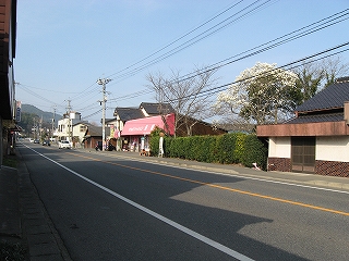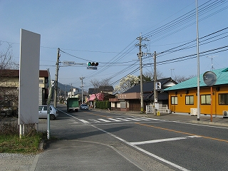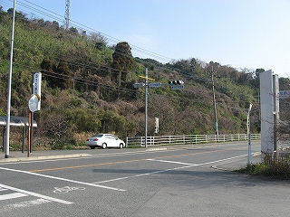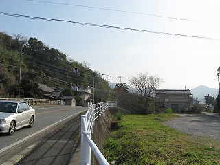 宇土・八代方面。歩いて脇道に入ると、スーパー郵便局など網田集落の中心部があるように地図には描かれている。