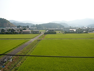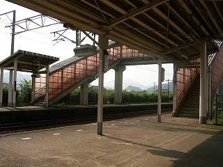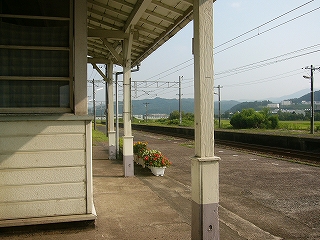 けれども、山に挟まれているのにもかかわらず広めのこの平野は緑が濃く、白い跨線橋や駅舎がよく映えていた。プラットホームもくたびれたセメントで、ホームにいるとぜんたいは瀟洒な感じさえあった。緑、というけれども、ぎっちり稲の育って揺れもしない水田のほか、里山や、ホームの端の方の葉の大きな草々の茂みだった。里山ながら手前が丘のようであるため爽やかで、この駅にいる間は、その山と田の風景を折にふれては眺めた。それらは車窓からも気になっていたものだったが、車内から見るより、降りて観た方がよりよいものだったので、「いかにも下車の小旅行という気がしてきたね」。