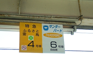 号車番号札。ふるさと雷鳥は年数回しか走らない。