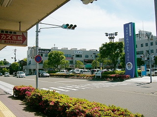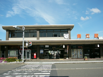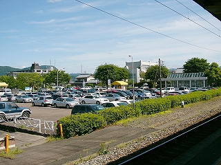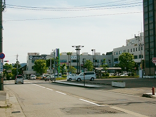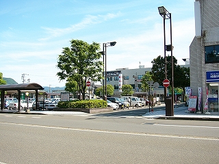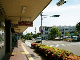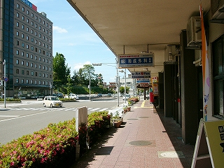 外へ出た。まぶしい。けれども暑くなく、いいときに来たんだなと思う。けれども秋のようではなく、艶かしさと、どこか胸騒ぎを覚える陽気。あそこのつつじも、ここのつつじも花をつけている。駅舎を出たら軒下の回廊ではあるが、そのすぐ前に道路が走っている。初めは何にも考えず道路を渡ったのだけど、よく考え直すと、主要駅の真ん前が主要道というのはほとんど見かけない。ふつう転回場があって、それから道路になる…。そういうわけでタクシー乗り場は別のところ、ロータリーはこの道路を挟んで向こうにあった。しかし駅を出て駅前風景がすぐ広がるというのはなかなかよかった。ロータリーにはL字のビルが、どんと建っていて、これがほかならぬ駅前の代表風景となっていた。4階建てで、4階部分はホテルだという。