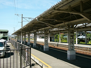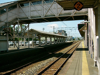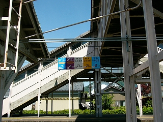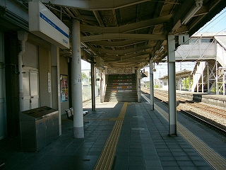 待ち人の少ないホーム下り方には木造の待合室があり、遠くに見えるくぐってきた跨線橋も木造のようで、利用者が多い駅であるものの、昔からのものを大事に使っている駅のようだった。