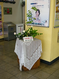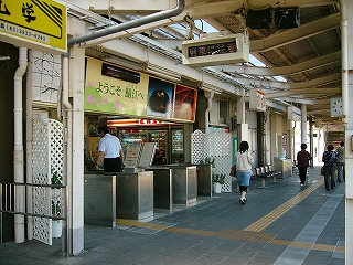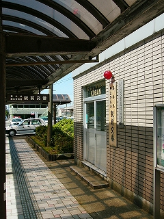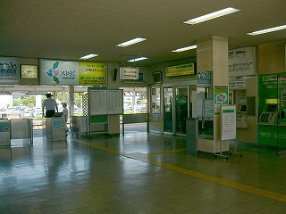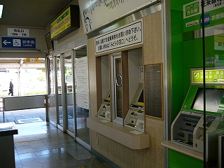 券売機前。みどりの券売機が一台設置されている。 意外と高価なもので、他社では同様のものでも主要駅に置いていないことがある。 待たされたくない人は有人出札よりこちらでの購入を勧められているようだ。