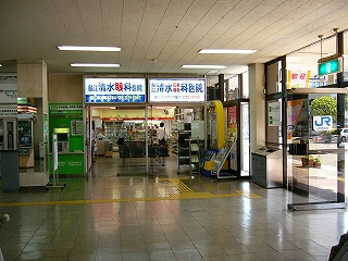改札口とみどりの窓口。みどりの左隣に夜間改札口がある。