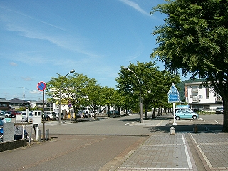 福井方に伸びる駅前の道。もう少し先にループ橋の入口がある。