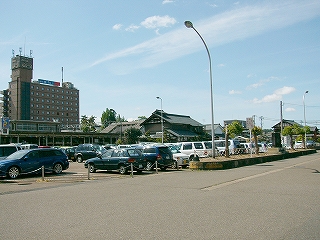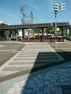 不思議なことに駅前の駐車場の舗装は敷石で詰めてあった。 レンガの横断歩道といい、おしゃれだ。