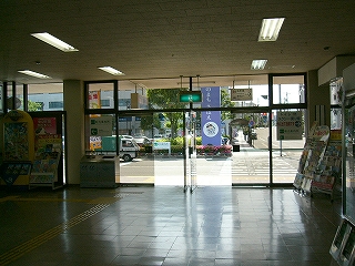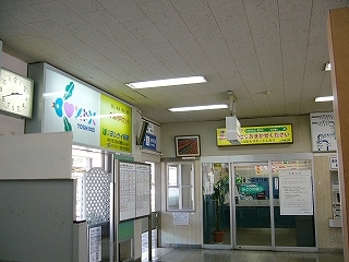 待合室から見た駅舎内の風景。突き当たりに2階への階段。