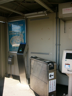 小屋の中は本当に改札機器しかなく、籠入れ花や掲示物などもない。時刻表もないのは不思議だった。集金設備ばかりで、ちょっといやなところだ。