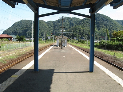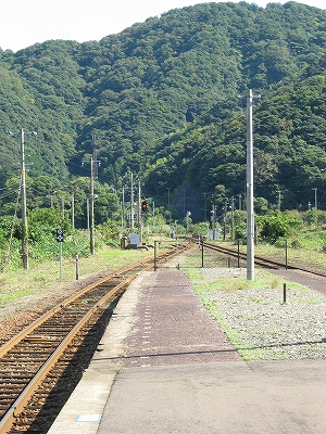 ホームにいると、山の雰囲気だ。海面はひとひらも見えないし、感じられもしない。だからこの先も後も汽車は、海に迫る山崖をくぐっていくだろうことしか想像しなかった。駅も竹野よりも素朴なもので、あちこち無数に造られた無名同然の木造りの駅にすぎない。 「やはり とある駅という趣きだ、有名地から一足伸ばしたらずっと良かったなんていうことはなかったか。しかし竹野も、元はこんな駅や土地なのを、人の目で評価され造り上げられたものかもしれないな。」