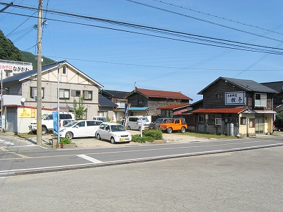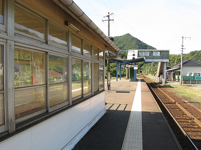気密な交番の、冷房の効いてそうな中でちらつく人影に、不自由さと緊迫がちらつく。そのほかは、民宿を交えた みな同じ高さの甍の群れのただ中だった。駅はそれらと融け合い、瓦屋根に板壁の町並みから、同じ材質を用いつつも、民家とは違う形態で 駅舎というものが生まれてきた謎の解き明かしがここにありそうであった。