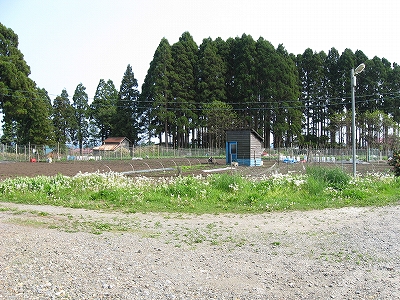 未舗装の駅前広場。砂利舗装でもなさそう。