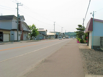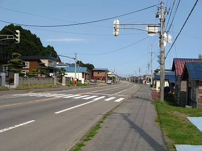 国道へ下りていく道。