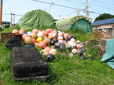 大量のブイや石油タンクが放置されている。また仕事で使うのかもしれない。ときどき杭と綱が、キイキイ軋み立てた。ずっと南には、雪渓の山脈がふんわり浮かんでいる。道内最南端の大千軒岳だろう。なんども地図で見てたからわかる。静謐と海の穏やかさの中で沈黙して身体を透明にしていると、ふっと、どこかの木枠の窓がゆっくりと開く音がした気がした。私は凝り固まった。それから草々を踏み分ける音も気にせず、大急ぎで国道へと戻った。