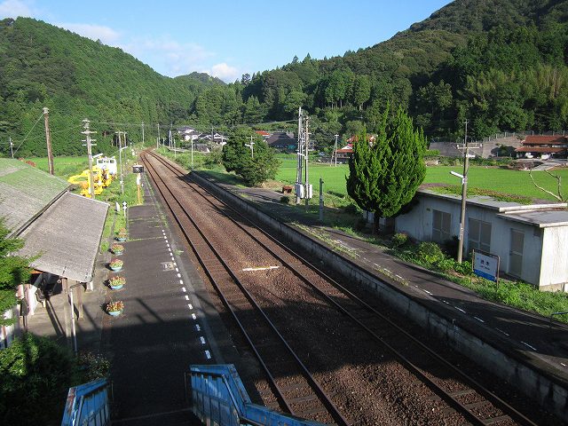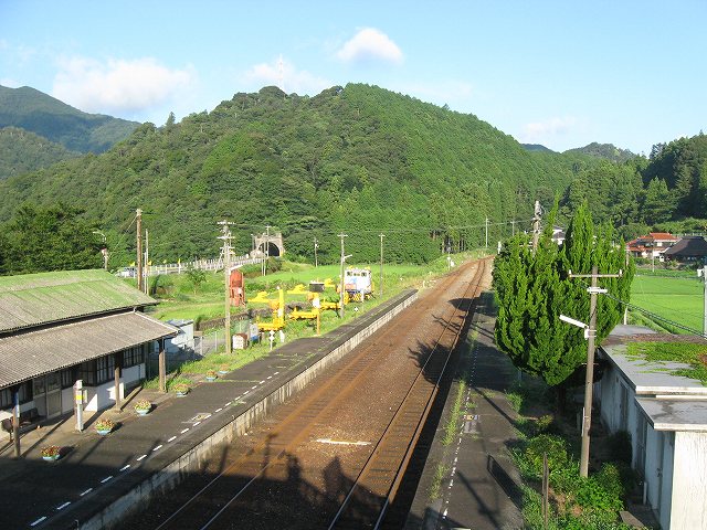 ホームから改札を出ようとしたとき、そこになにか町が凝縮しているようだった。かつては人が応対した、人の出入りするゲート。そうしたゲートは日常的には駅にしかない。アドベンチャーの世界への切符なのか、人との契機なのか。私はやはりなにかの町を期待した。しかし出たとこは高台の行き止まりで、土手造りのなつかしげな川と青い山脈が胸を開いて待ち構えるだけであった。なにかこう、青少年らがむりやり引っ張ってこられて合宿させられる夏の朝、そんなことを思い浮かべた。