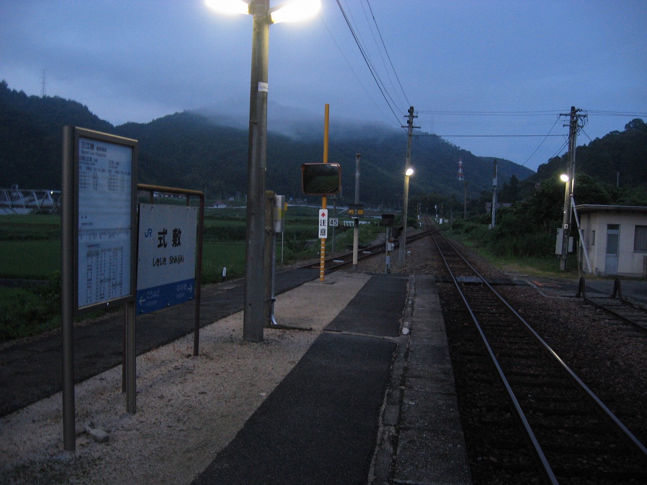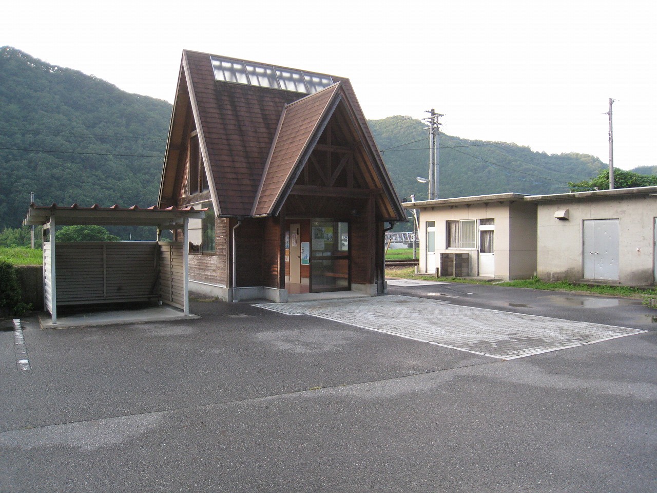 構内から見た、式敷駅駅舎その1.