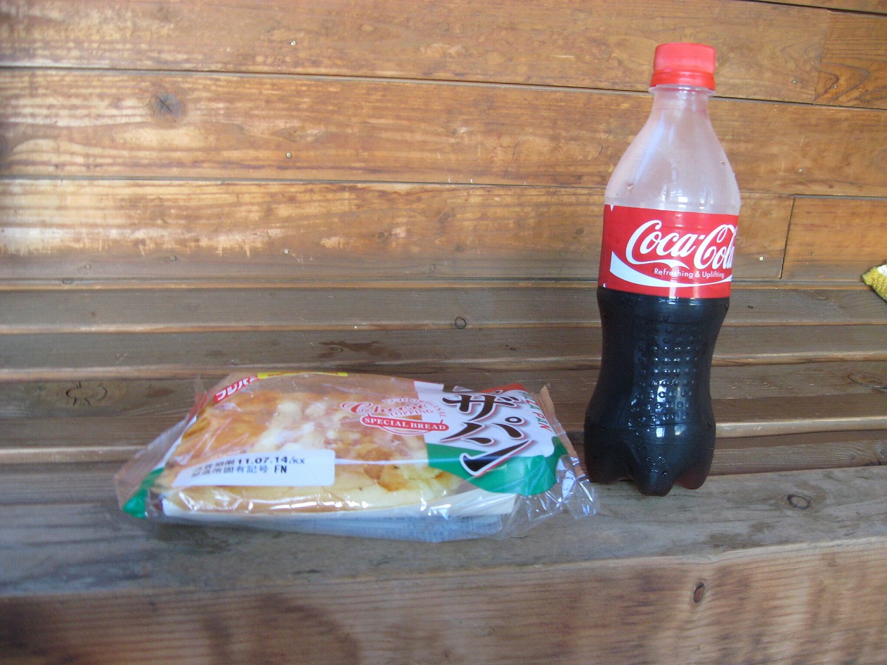三次で買っておいたパンを、ここで買ったコーラとともに