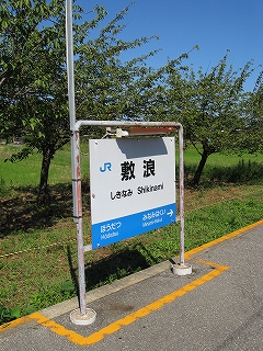 夏木立に沿った牧歌的な柵の向こうには自転車が投げ捨てるように駐められている。遠いものの、この緑の群れを越えると、確かに日本海だと感じさせた。駅名も手伝って、この駅の属性は海なのではなかろうか。むろん地名の波や浪は、直接そういうものを表しているとは限らないけれども、旅人に期待させるところがあった。
