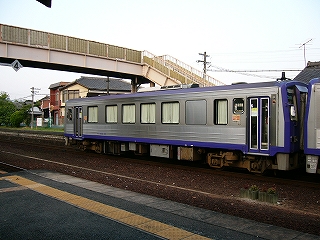 降りた人たちがどしどし昇っっていた跨線橋に一人でゆっくり昇った。そこからの風景はこの村の全貌を想像させた。重たげな甍の民家だけでなく、伊賀らしく低い丘陵地がもこもこと広がっているのがわかり、また一方では野原のように何かが広がっていた。車窓からはわからなかったが、ここにおいては少し突飛な県境の大きな山があり「こんな麓を走っていたんだ」と、降りてみて初めて知った。そして自分の乗っている列車がそこを走っていく様子が思い浮かんだ。というのも、1両ないし2両の気動車は、新しいくせに壊れそうなエンジン音を唸らせつつカーブし、丘陵地や水田のすぐそばをがちゃがちゃ走るのが主だったのだった。