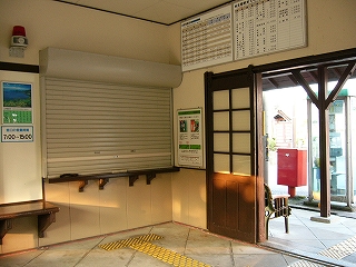 軒下から駅舎内を覗いて。