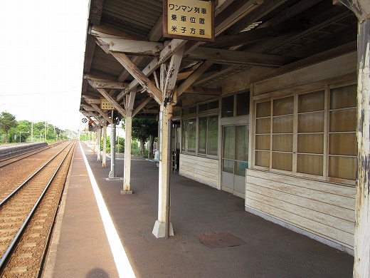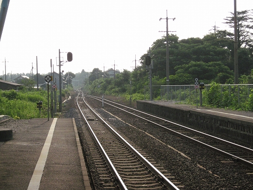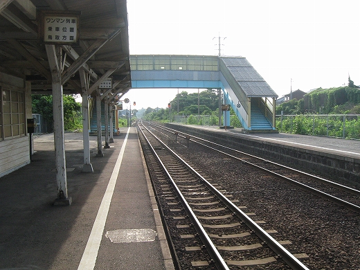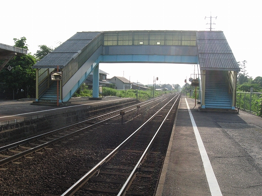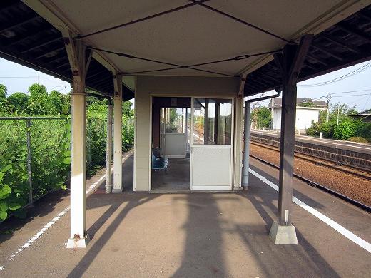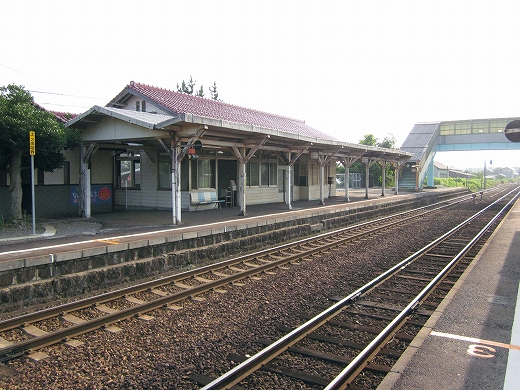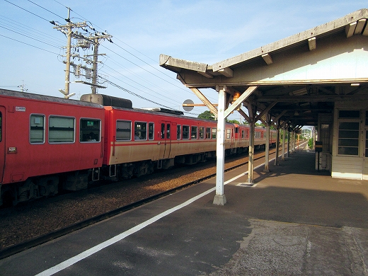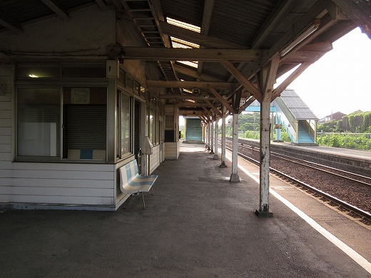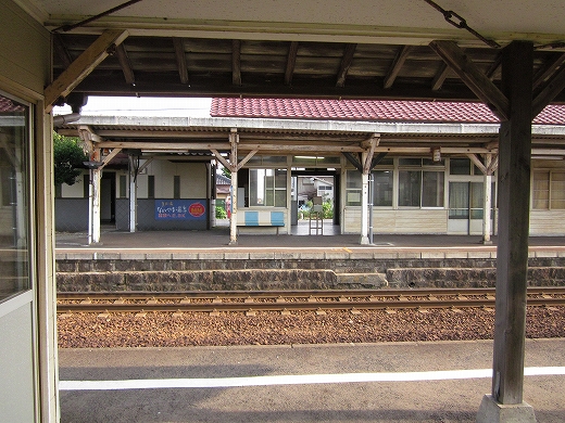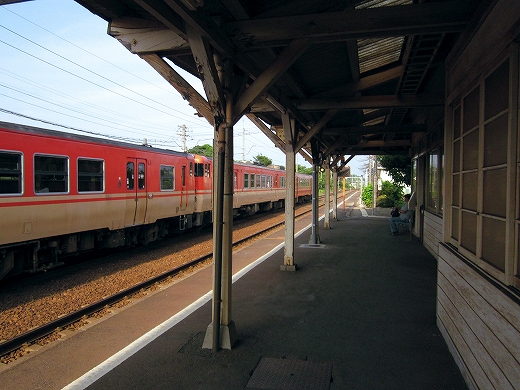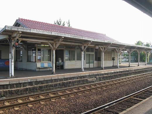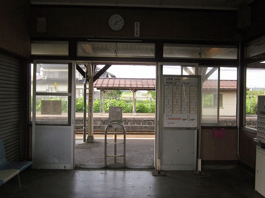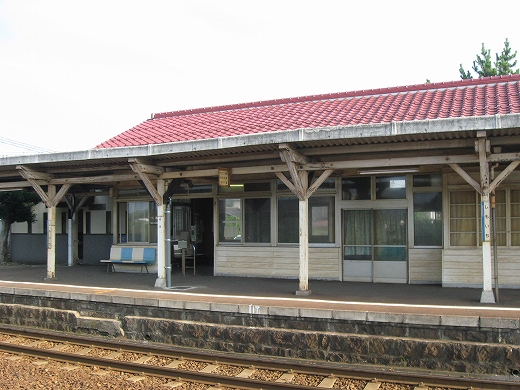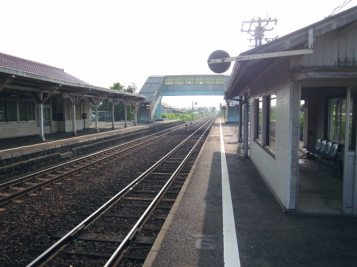 この辺に来ると勘のいい人は行き止まりを感得するかもしれない。なんとなく寂しげで不思議な駅にいくつか遭遇することがある。もう陽ははっきり顔を出していて、じりじり気温が上がってきた。しかし山陰の真央で真夏の暑さを感じられるのは幸せなことだった。降りた騒がしい気動車をよそ目に地の人のように改札口にさしかかると、古い木の匂いが鼻を突く。そしてここがさびしい小駅であることに気づいた。下車客も僅少かもしれない。