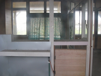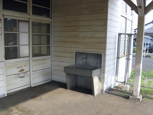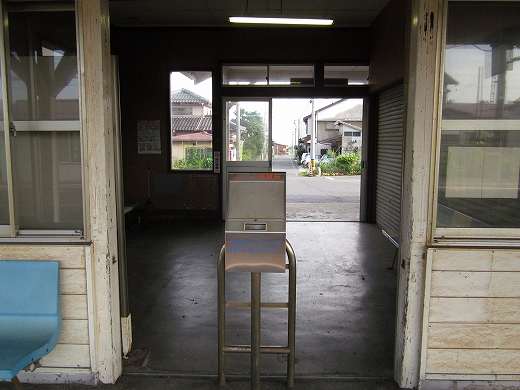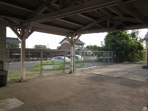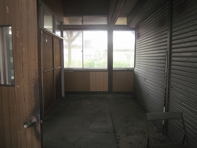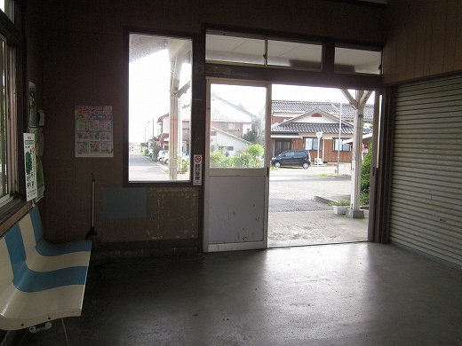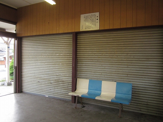 駅舎の中に大きなシャッターが2枚あったのが印象的だった。こんな小さな木造舎でなにか食事処でもしていたのだろうか、中には炊事設備が窺えた。