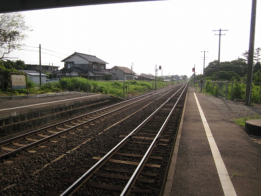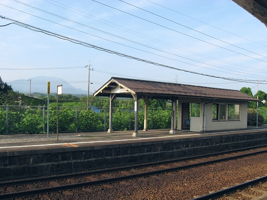 「こんな駅がしばらくつづくといいな」と思いふけりつつ、ホームを歩いてみた。行く末の後にも先にも緑を携えているのは、やはり裾野を走っているからで、市街の予感はどこにもない、隔絶されたしずかな駅だ。中国地方だったが、やはり臙脂色の瓦や、濃い木の色、鉄粉などの暖色が、とくにそう思わせる。
