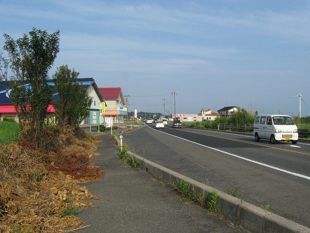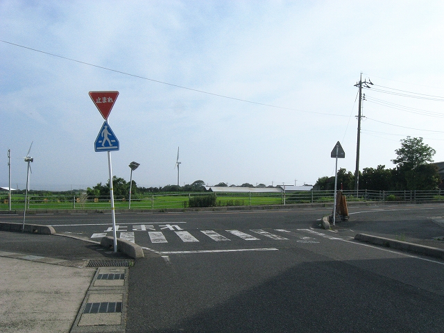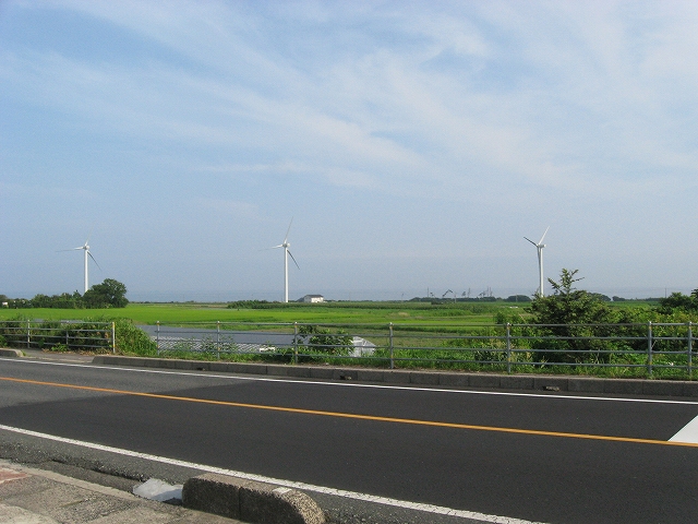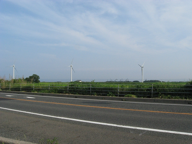 国道に出ると遠くに海面と風車が見えて、きもちいい。あたりに店はなく、やはり遠く海に突き出したようなところにいるんだなと。こういった円の半径が大きすぎて無限線になりそうなやんわりした水先案内人みたいな地形はかなり好きである。どこが尖っているか? 私が接点になって微分係数をしらべたくなる。岬は突出しわかりやすすぎて非連続な特異点である。