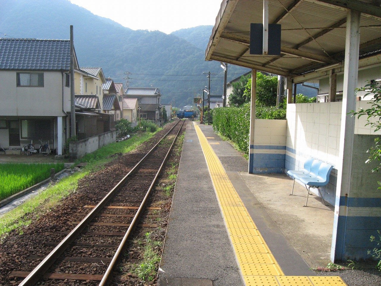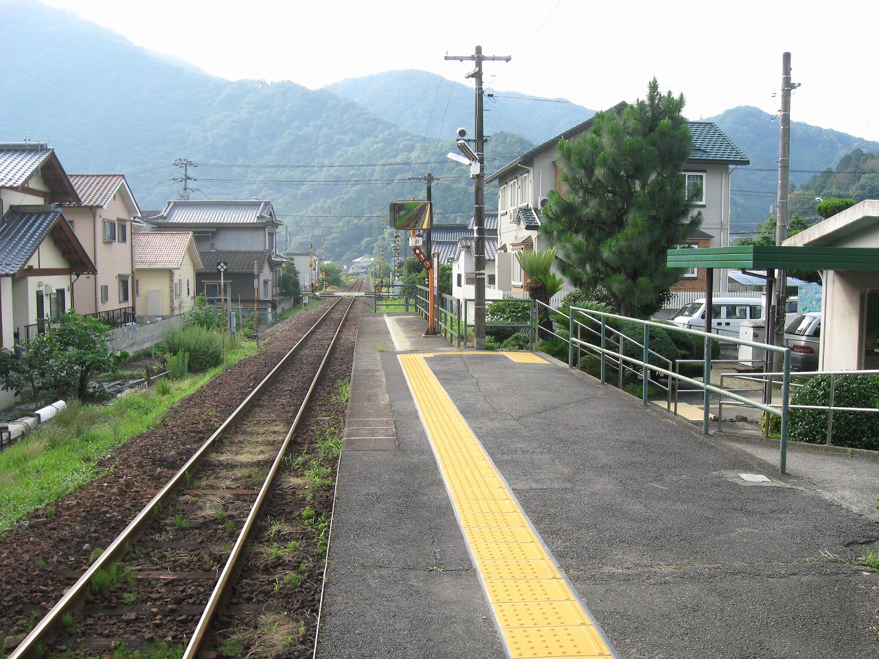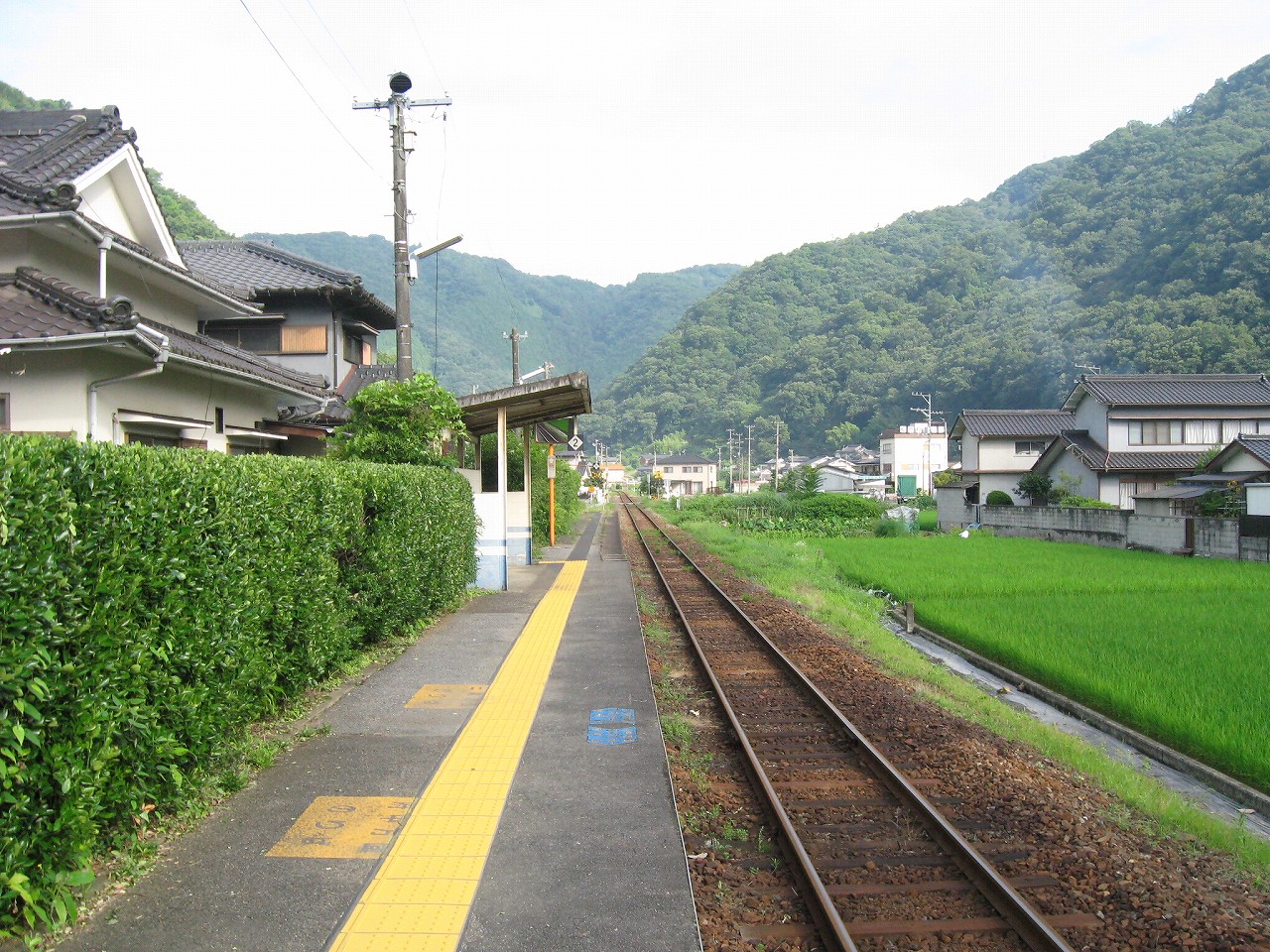 古い集落の中にある駅という感じ