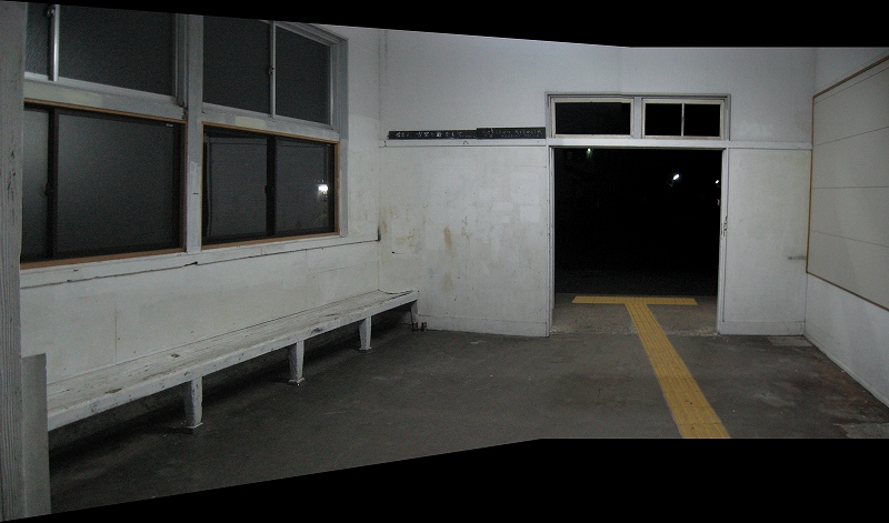 椅子も座れないくらいなもんだから、私は座るためだけにシートを敷いたくらいだ。なんとか対策を考える。とにかくシュラフの下にシートを敷いて、間口寄りの死角に陣取って…しかし行き詰まり、幾度も構内に出て、あるはずもない向かいのホームの待合室に長椅子を見つけようとした。しかし何度見てもない。あたりまえだ。「ああ! こんなときに限ってない!」 頭を抱え込んでは、駅舎の中を見渡す、そんなことばかり繰り返していた。気温はあっという間に下がっていく。「確かに何度も見れば寝床が現れるわけでも、この駅舎内がいいものに変わるわけでもない。けど、見方が変わったり心、づもりができるようになるというのはあるかもしれないな。」 もはや精神論だ。