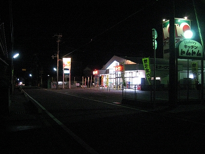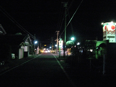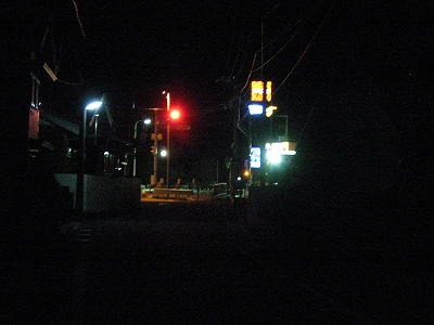 しかし向かう道がわからない。駅を出てもその方角に道はなかった。でも見知らぬ町の闇夜の中、ホームの端の先の方角にあることだけはわかる。私は突っ切った。しかしその後はひどい路地に取り込まれ、人一人分くらいしかなく、何度も鞄と外套を擦った。こうして民家の狭間の真っ暗な恐ろしげな道を経、どうにか踏切通りに、ぽろりと出た。そのあたりは市街地でもなく、ただオークワがあるくらいだった。