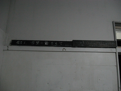 たとえ民営化されたとしても、それまではここには人が詰め、国鉄として物資や人の移動をつかさどる歴史を惹起させ、またそれ自体の使命を帯びていたところのはずだ。それがものの数十年で、地位は底まで下落、足蹴にされ、毀たれるようになった。ふと、京都御所から陛下が去り、まもなく荒れはじめた話を思い出す。権威というのは、それが去ると人は見向きもしなくなる、つまり人は現況を見て態度を変える、そういうことのようだった。むろんここには何か事情があるやも知れぬ。 「若者よ、古里に誇りを持て」
