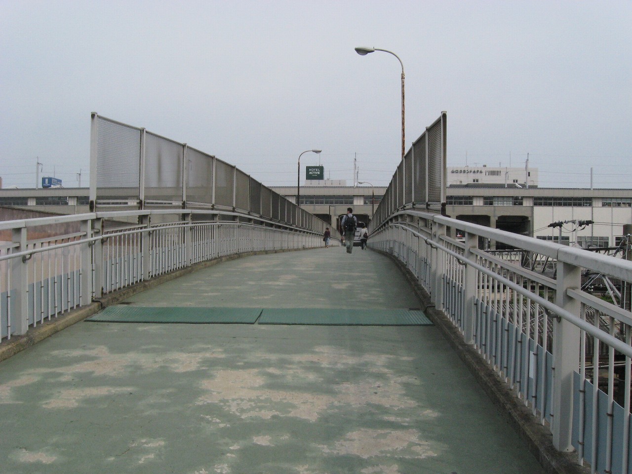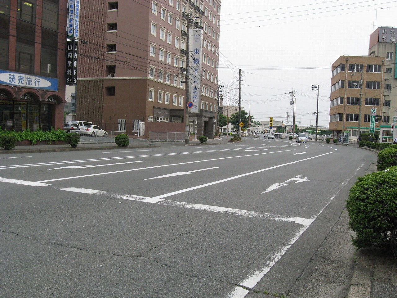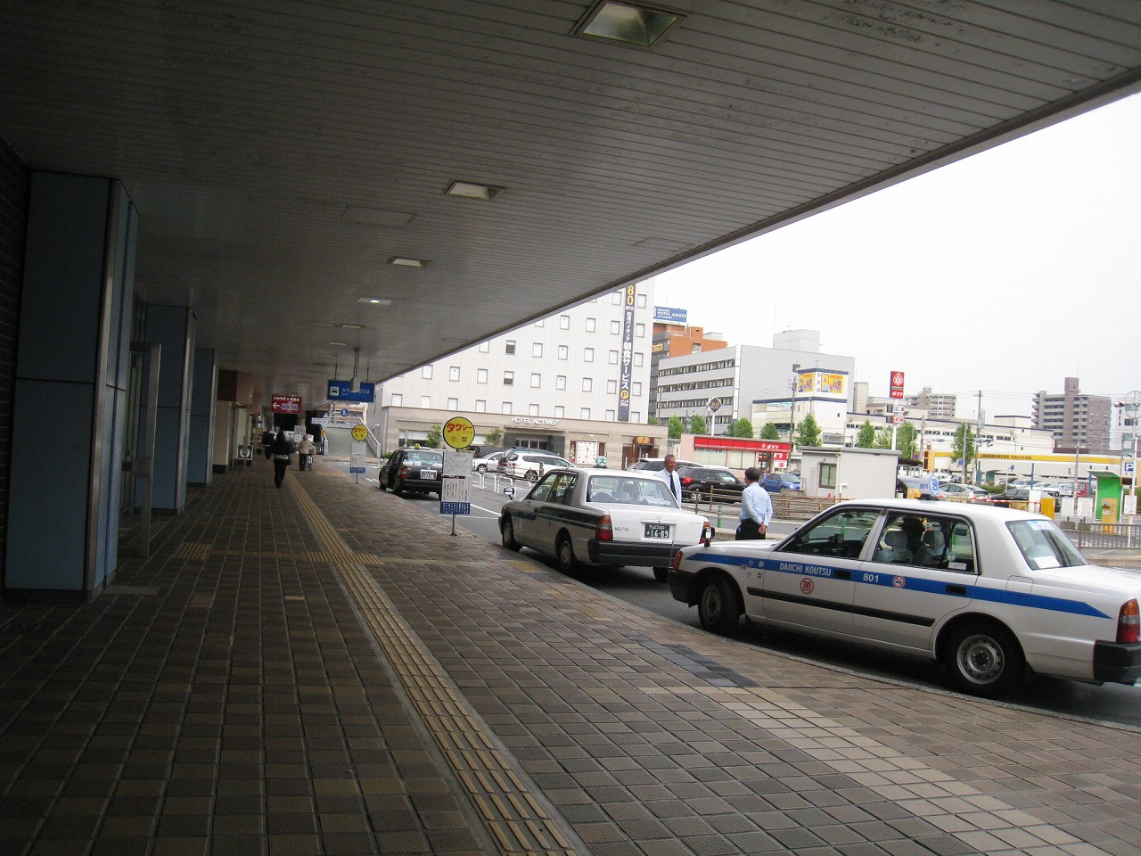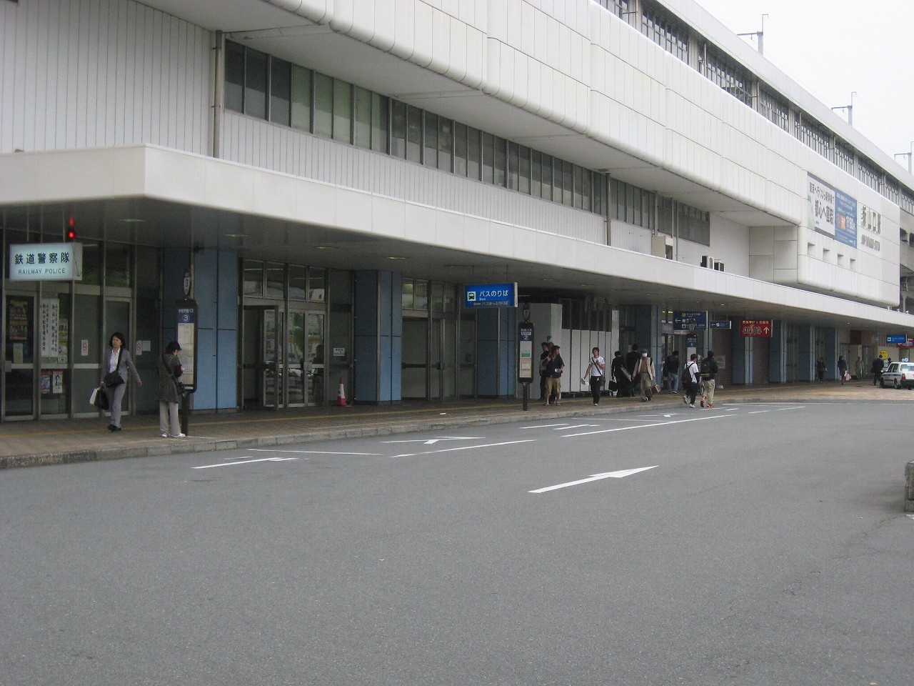 構内にいてたときからずっと気になっていた水色の陸橋を渡る。こうやって駅を楽しんでいると、駅旅だなあと思う。新幹線の高架をくぐると、そこは少々世界が異なるようなニューシティー。自動車の走行音がよく聞こえ、道も広く、ビルとビルの間の余裕もある。どこでも新市街と旧市街というものがあるものだ。