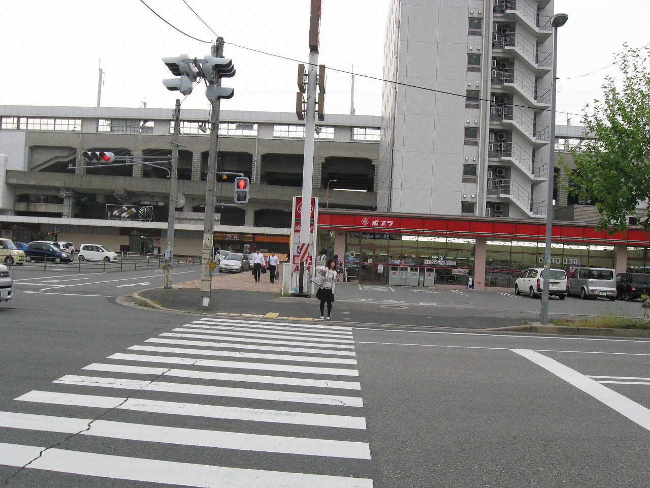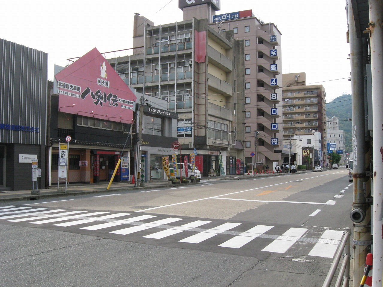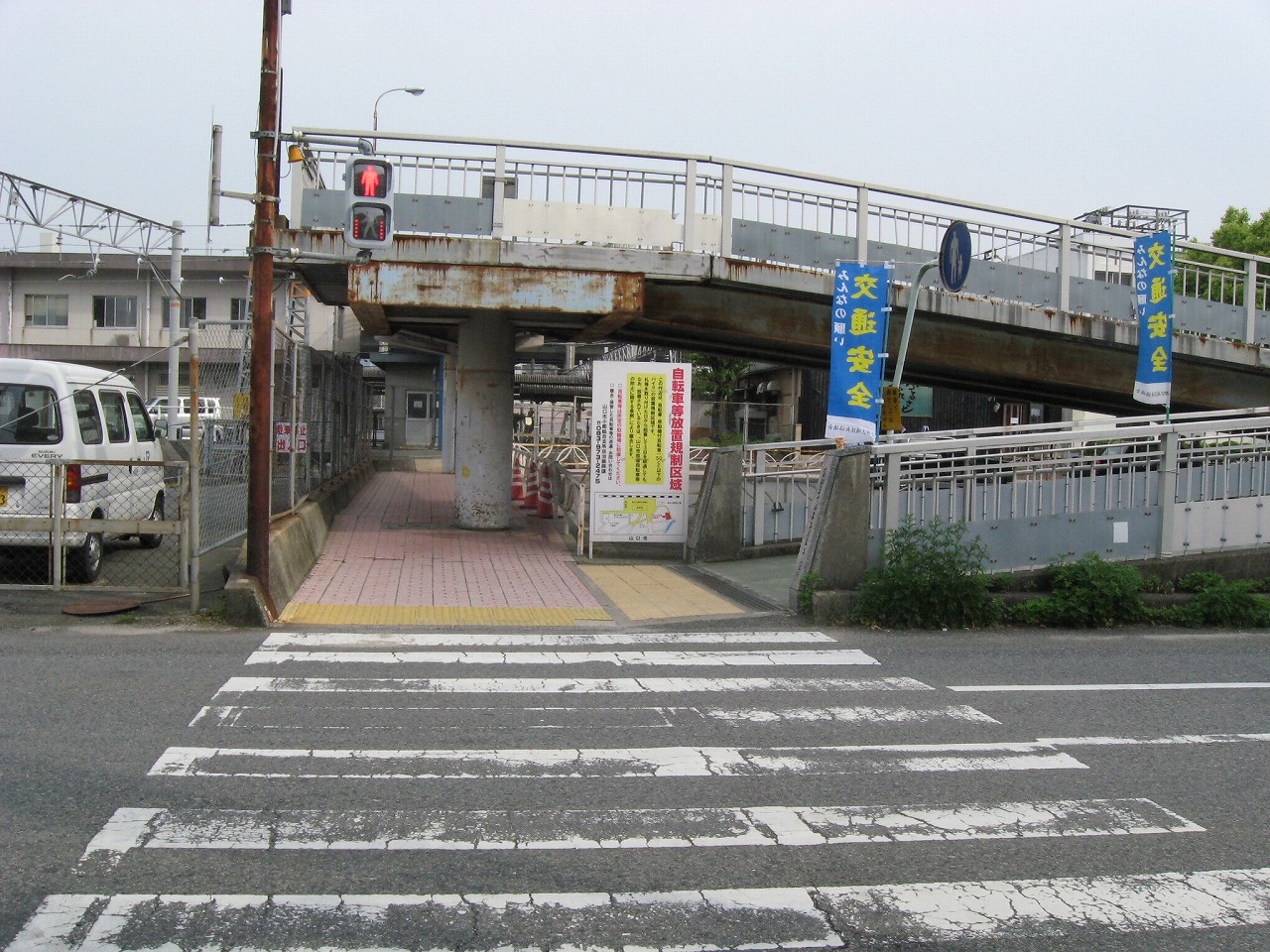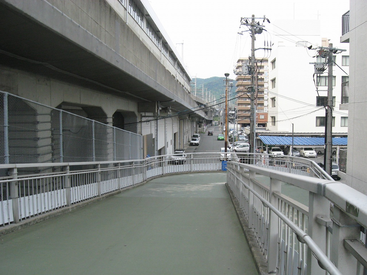 構内にいてたときからずっと気になっていた水色の陸橋を渡る。こうやって駅を楽しんでいると、駅旅だなあと思う。新幹線の高架をくぐると、そこは少々世界が異なるようなニューシティー。自動車の走行音がよく聞こえ、道も広く、ビルとビルの間の余裕もある。どこでも新市街と旧市街というものがあるものだ。