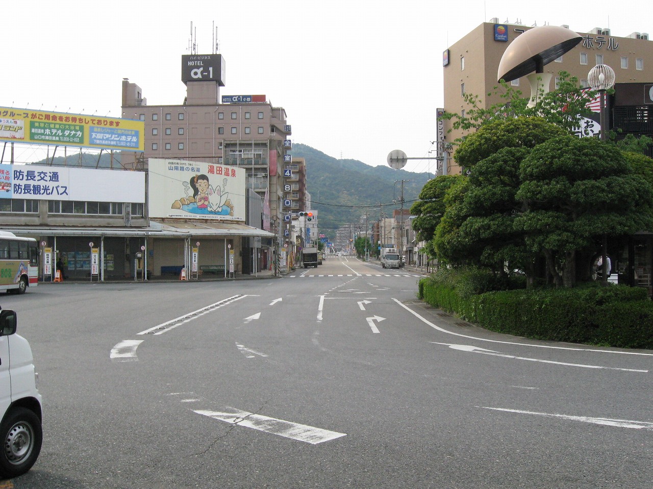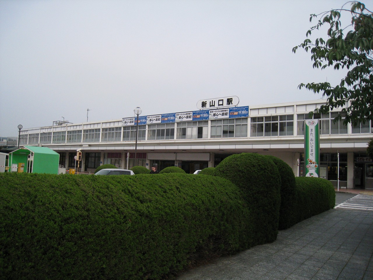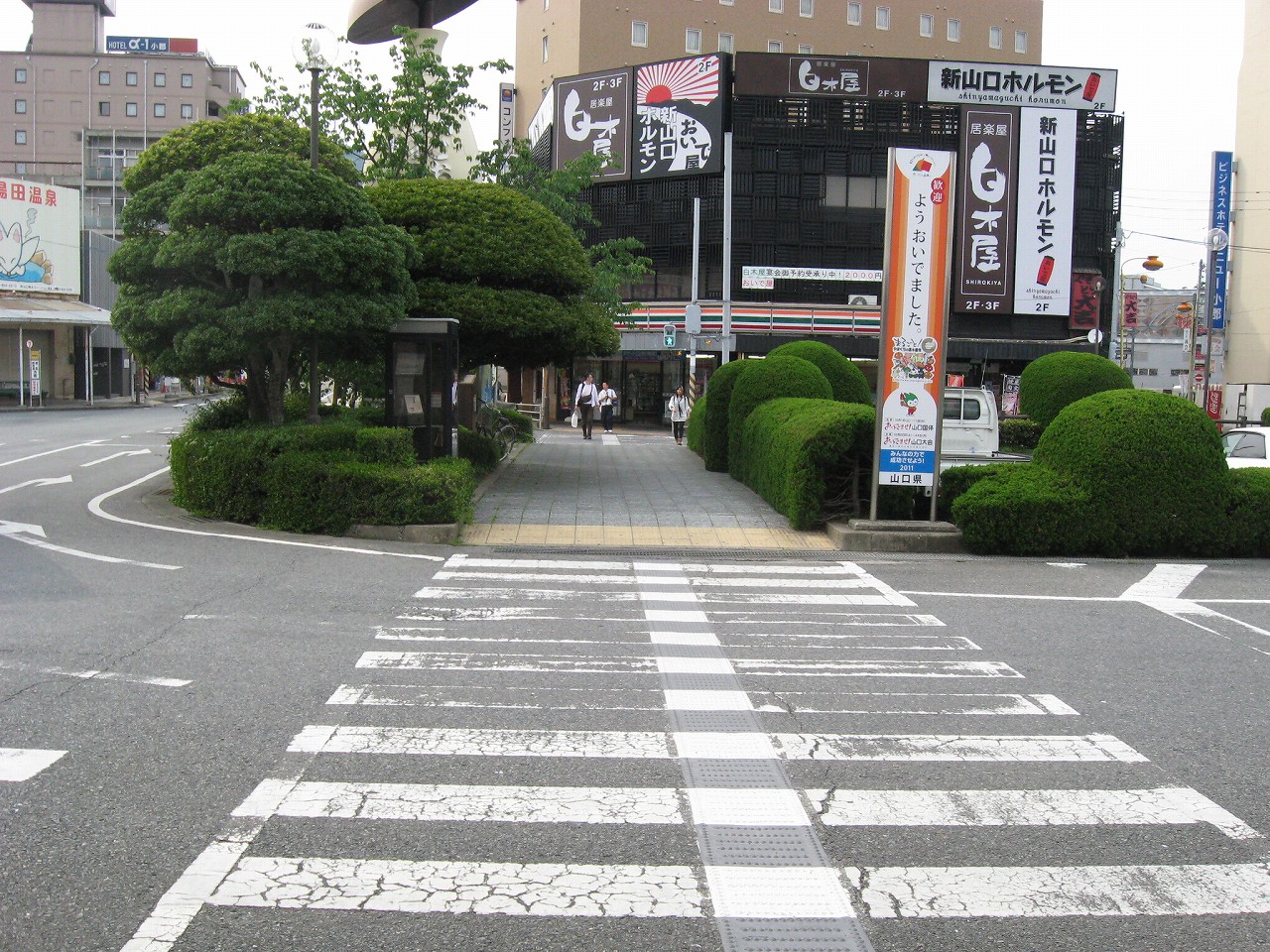 広い構内から人二人分しかない改札を抜けて外に出ると、新山口駅前は静かだった。とにかく植え込みが素晴らしく造形されていて、そこに僕は山口のプライドを感じ取った。基本的には丸形が多い。周辺には居酒屋が散見され、昔からのビジネスホテルが見られる。かつては出張の折、しばしば利用されていたのだろう。