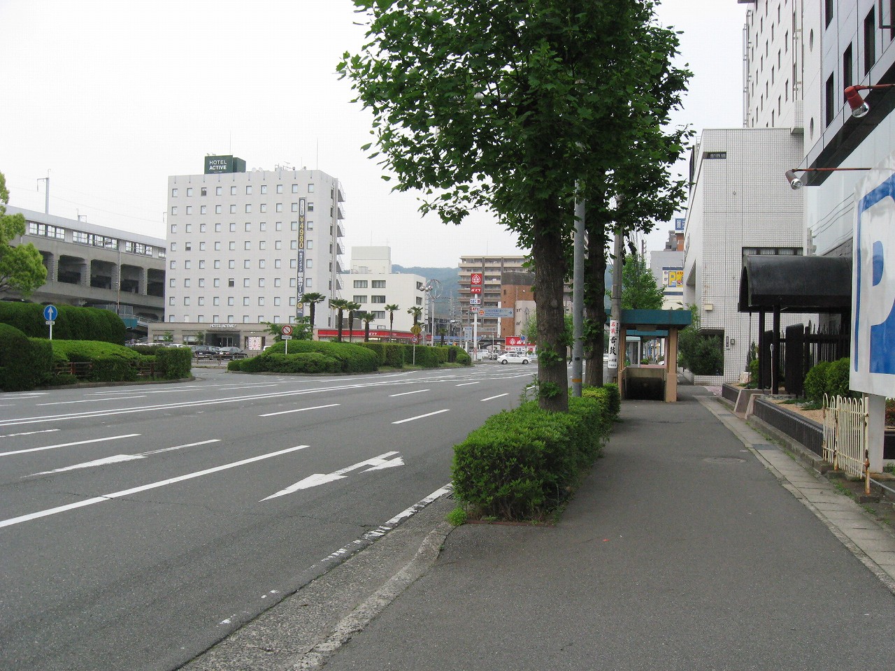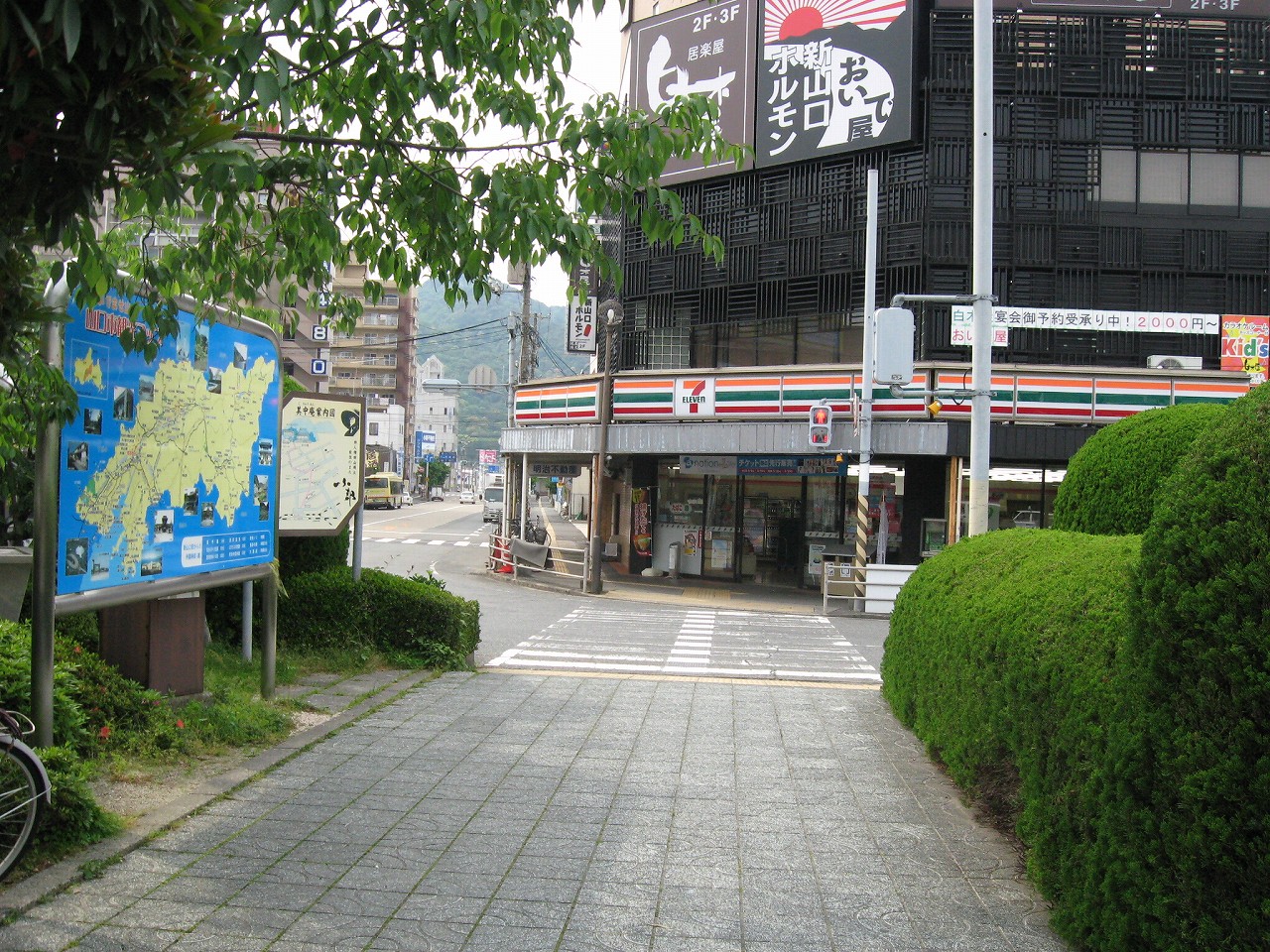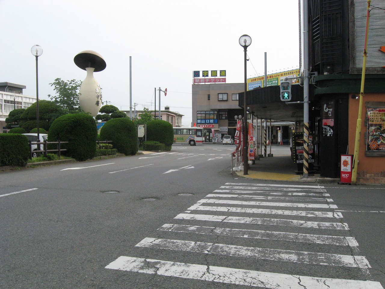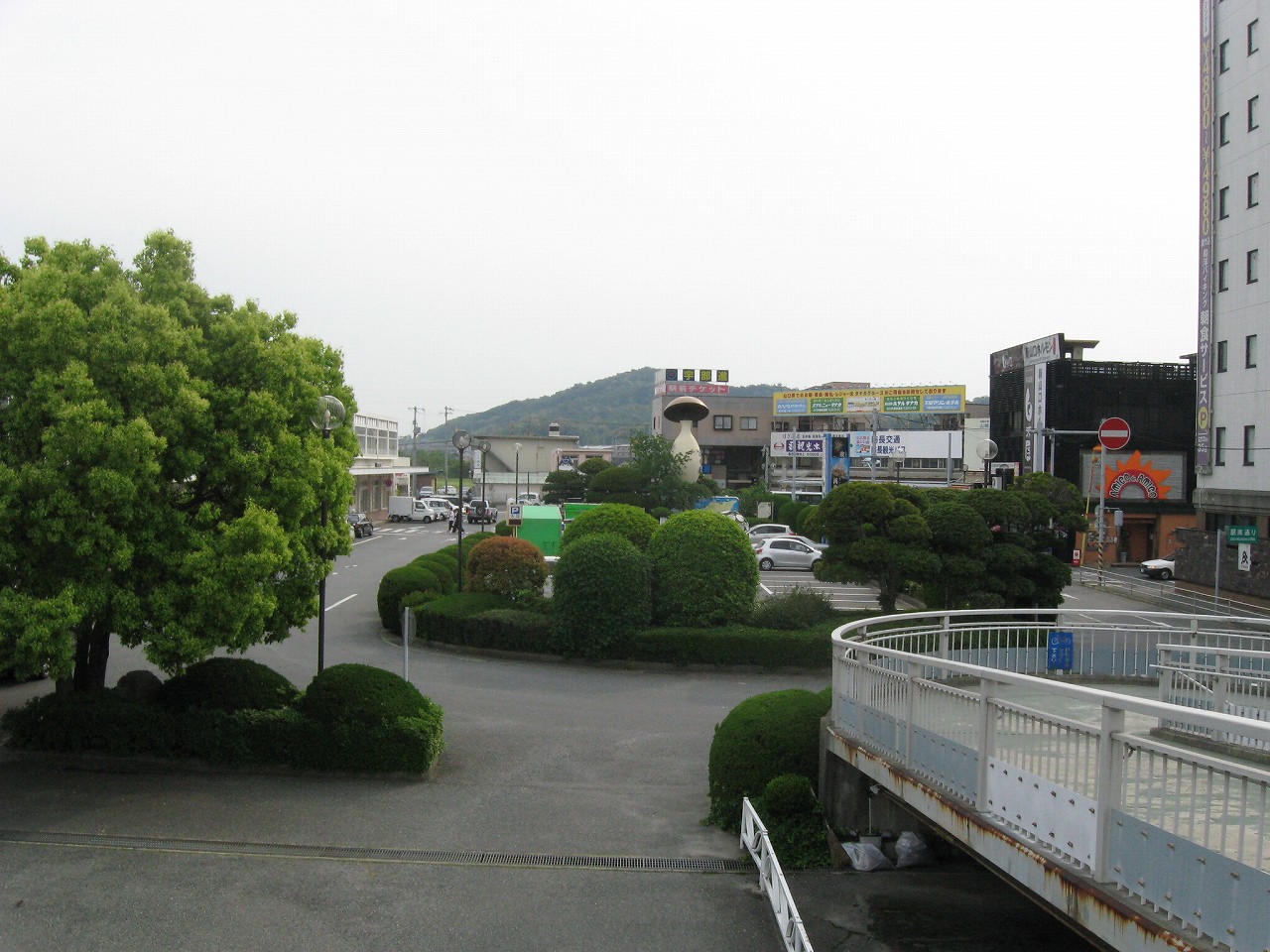 広い構内から人二人分しかない改札を抜けて外に出ると、新山口駅前は静かだった。とにかく植え込みが素晴らしく造形されていて、そこに僕は山口のプライドを感じ取った。基本的には丸形が多い。周辺には居酒屋が散見され、昔からのビジネスホテルが見られる。かつては出張の折、しばしば利用されていたのだろう。