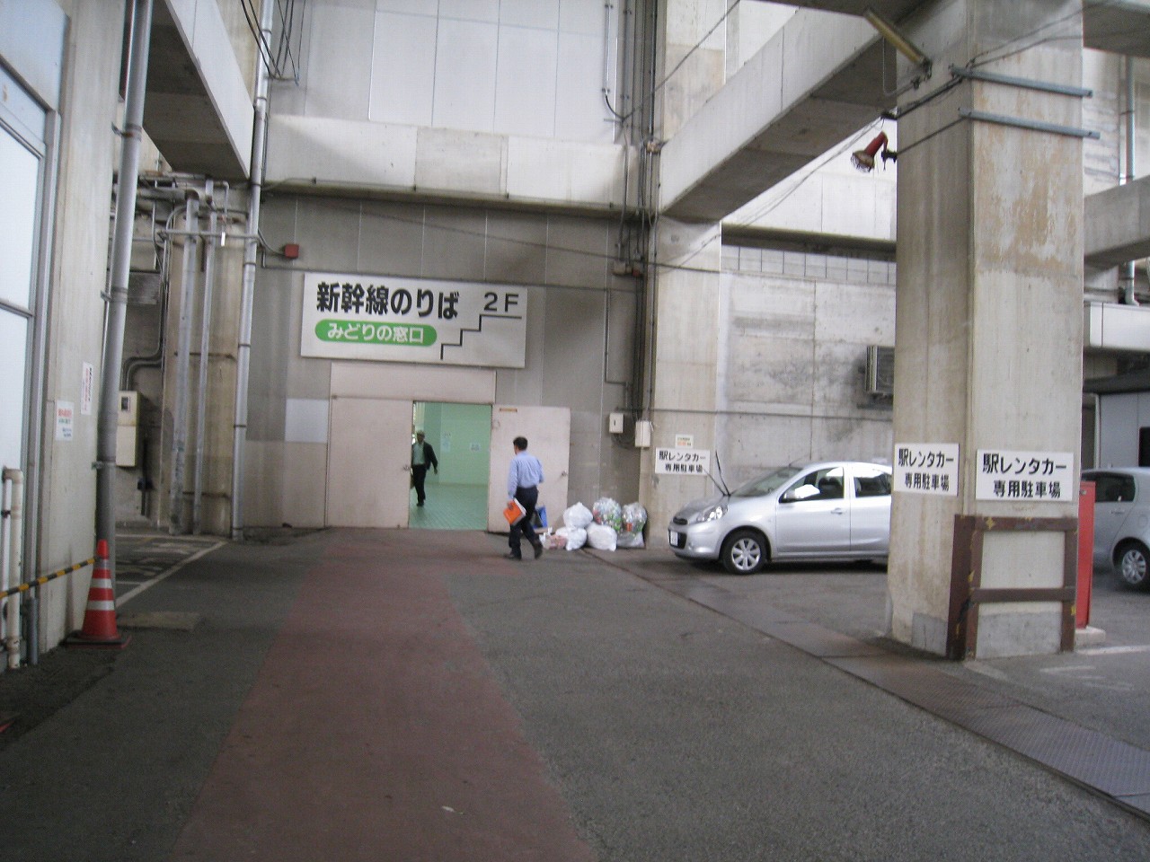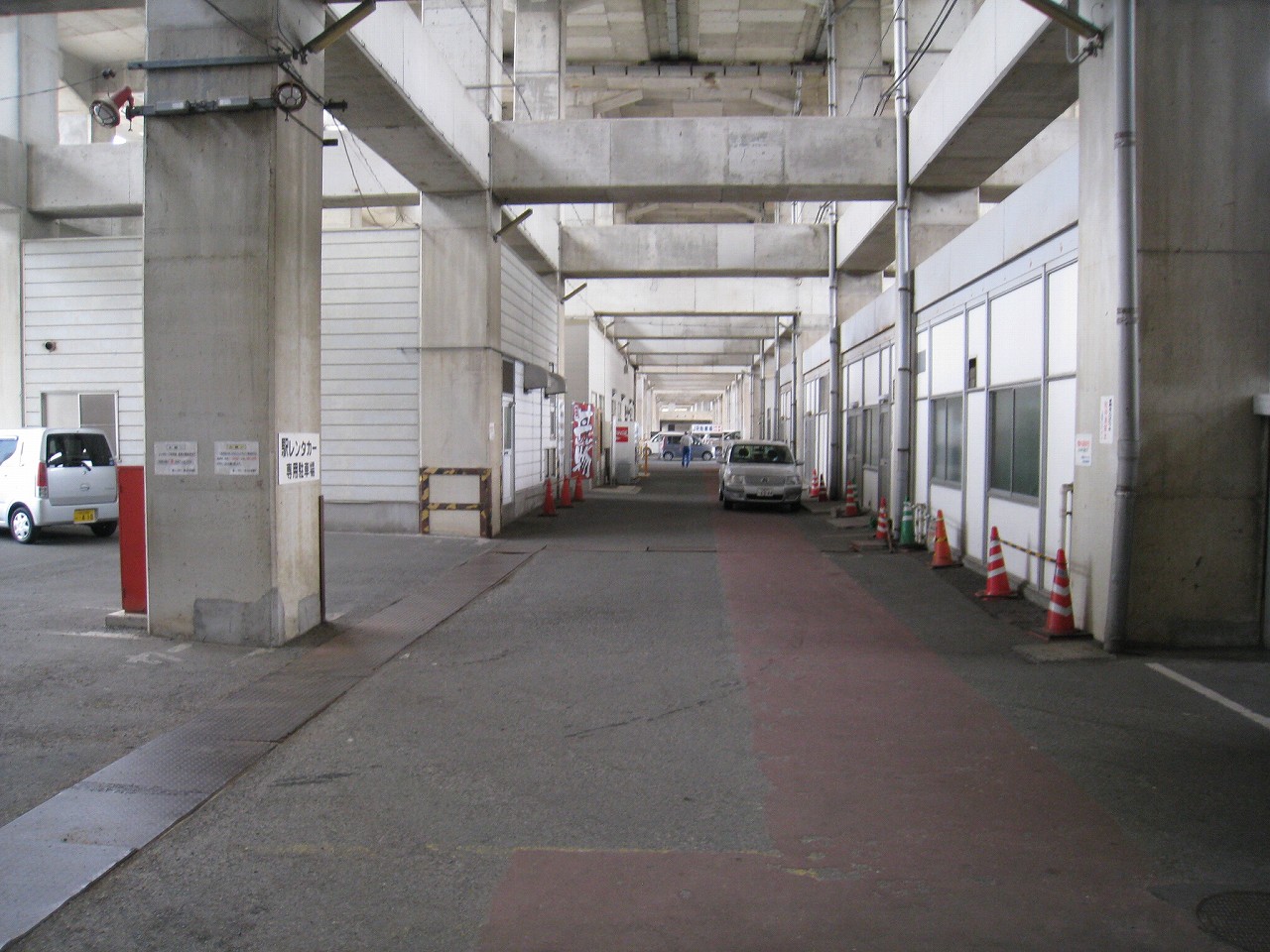 昔の新幹線駅にはありがちだけど、中の人専用の通路がひっそりとあったりするが、この駅は異空間につながる扉ぽっかりが開いていて、そこを進むと突然、殺風景な新幹線の高架下に出るという体験をした。どうもレンタカー利用者のためのもののようだ。