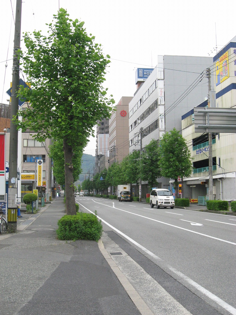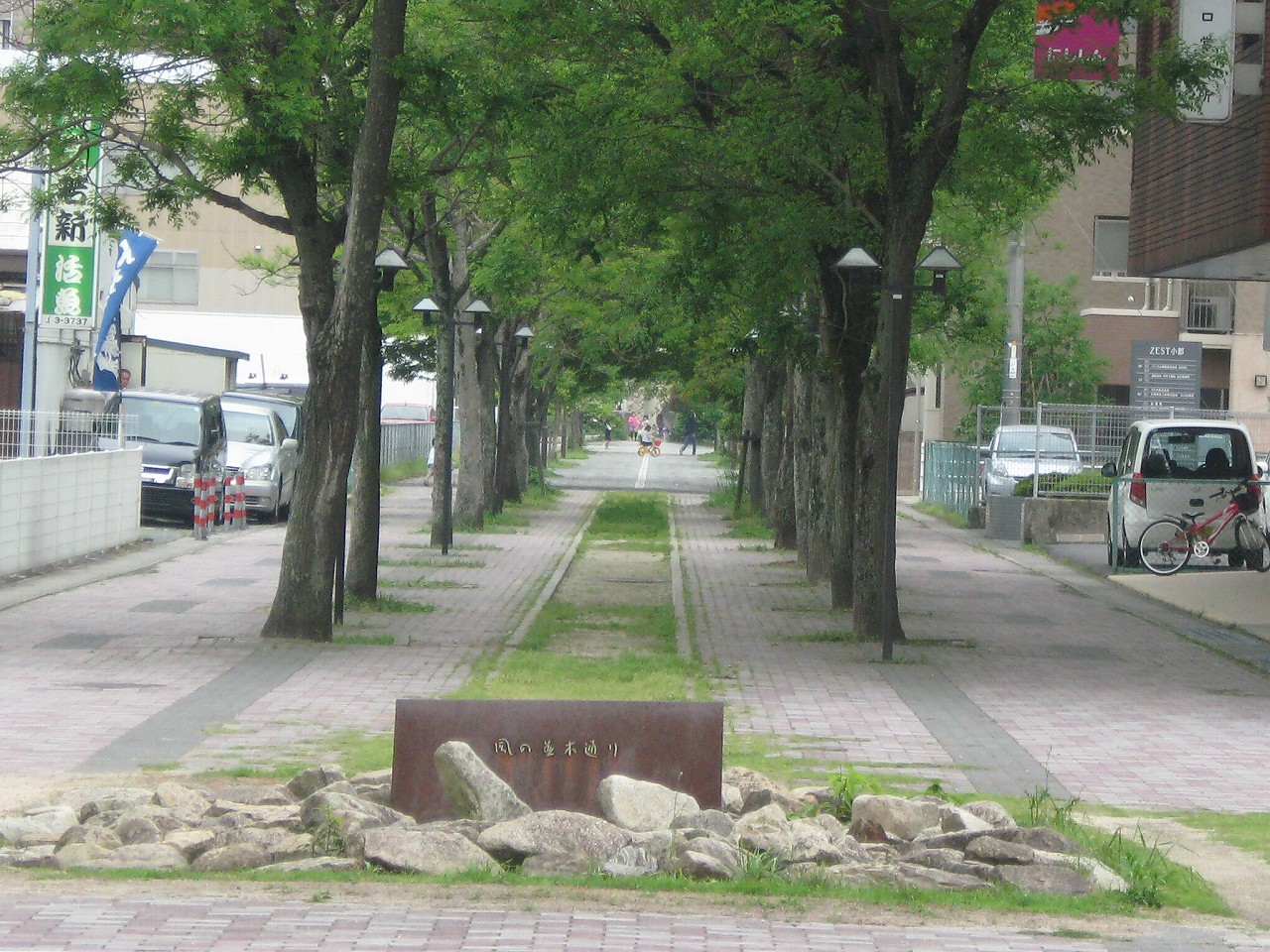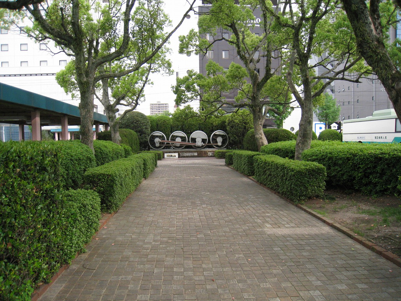 またこちら側は元々は駅裏だったのだが、今ではぱっと見、本式の駅前と見間違わん感じになっている。けれど街路樹は徳山同様豊富で、まるで廃線跡を活用したかのような風の並木通りというのがあった。これは都市公園なのだそうだ。