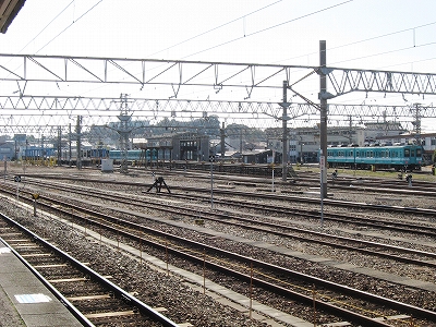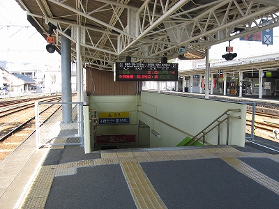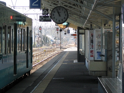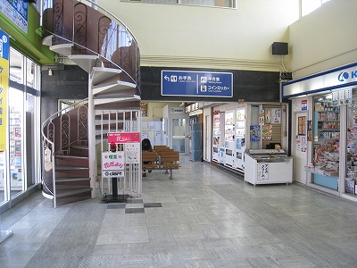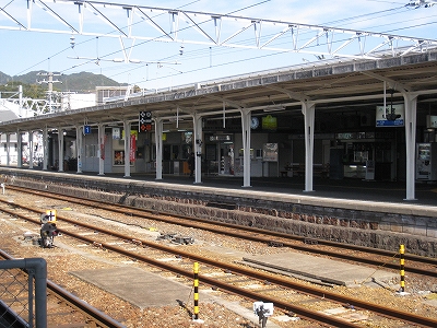 栄誉ある1番線ホームの半円大階段を見て感動しない人はいないだろう。ここまで郷士たちの歓迎と誇りをかんじることもない。いまはただかつての誇りそのままに静かに汽車を待っている。一人客がラッチ外から駅員に詳しく話を聞いていて、うまい具合に駅員の無聊もやり過ごされたものだ。