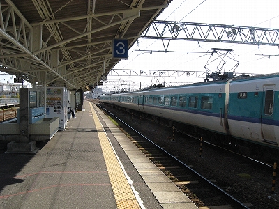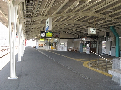 遠くに休んでいる何編成ものエメラルドのbirdを見やりながら、こんな遠くに巣があったのかと、気候の良さを想い、そしていたく乾いた風を感じた。大げさなくらいの大半円形の階段を上って陰の旗艦ホームに足を踏み入れると、鉄道にあった優越感をもたらしてくれる。人々はすでに去り、つややかな床面の奥に、そば屋が暖簾を掲げている。日本にもし鉄道が走ったらこんななるだろう、そういう想像がそのまま表れているかのようだった。厳しく券面を改めるのだろう、有人改札に駅員が常駐し、ほかのレーンは少なく、そして閉じられている。そうして出入りを絞る一方、ホームが誇らかに広いのは、鉄道線の世界の豊饒さを物語っているかのようだ。それは線路自体もそうだった。紀勢線で最も広い構内を見せつけるこの駅は、もっともどの駅よりも単線らしく入って来、そして出ていく。