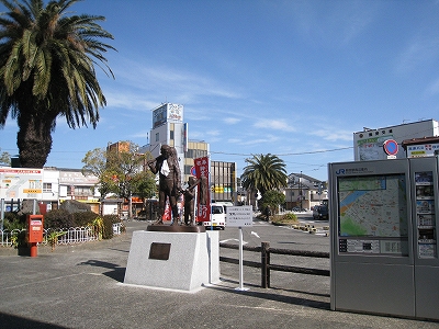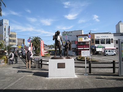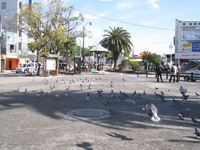 いつものように紀南の冬の空気がある。これが気候の安定というものだろう。国内でもそうそう見られない。まっさきに驚いたのはハトだ。こんな多いとは。青銅像の前を、群れてまるで市鳥のように占拠している。中に白っぽいのがいた。しかしそれはコンクリートの路面に合い、新宮に似つかわしかった。 後で郷里の詩人の鳩ポッポの碑を見つけ、わざと餌付けして駅前にいさせているのではないかと思い至り、なんと郷士的な文化の守り方だと思う。冬のお燈祭りのすすきも、駅構内に飾ってあった。
