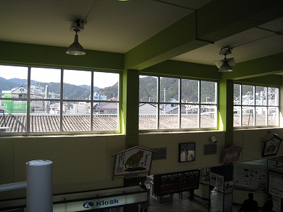 駅舎を眺め、旅寝の茅舎も紀南の最終地点ともなると、こんなふうに古風にきらびやかな造りになるようだ。もし太陽が当たれば、さぞかしそのガラス張りなのを人にひどく印象を残すだろう。風が乾いていて、日中で昇温もあり、過ごしやすい。早いうちに整備したので、いまも変わらずそのまま残っている。