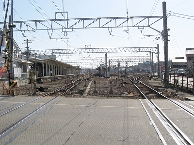 街へ向かおうと踏切を渡るとき、三重の方を見るとなんと一線になっていた。まさかと反対を見ると、そこには駅構内が広々とと横たわっている。私は哀しんだ。街角の石橋から見下ろすと一線が掘割を抜けているのを見てもそうだった。